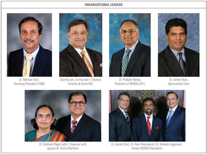 Dr. Mahesh Soni, Pediatrician and Glad Kurian,Senior Consultant with Morgan Stanley. Since the past 17 years, the two have built up an organization that has flourished each year with changing leadership of new Presidents and Committee Members. Dr. Prakash Reddy, current President of BIMDA, manages the group with help from Glad Kurian, Honorary Executive Director.