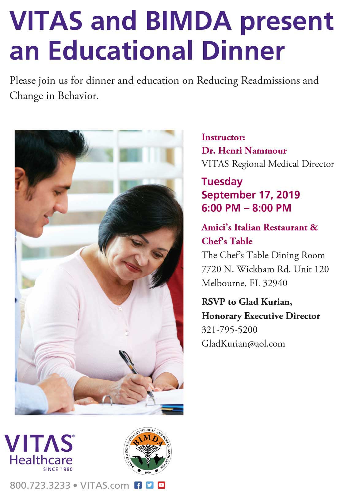 We hope you enjoy this small sampling of the images taken at the VITAS and BIMDA Educational Dinner held September 17, 2019 at Amici's Italian Restaurant & Chef's table. A great time was had by all. Watch for our next Medical Education Dinner to be announced.